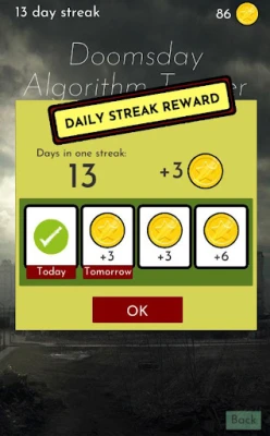 This brain trainer for children and adults will explain the different steps and gives simple assignments to train yourself in memorizing specific dates or to practice simple calculation steps. Play this app every day to master this simple algorithm, that can be learned within an hour.
