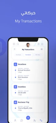 Enjoy the smooth navigation process with bold colors and informative icons that ensure real-time alignment and career development. Through interactive and accessible options, you will be able to synchronize different information and upload attachments, send vacation requests, manage attendance, and follow up or be notified on their progress throughout.
