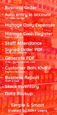 Manage your business more efficiently with this all-in-one app featuring Order Book, Khata Book, Expense Manager, and Cash Register β everything you need to simplify bookkeeping and track finances on your phone.