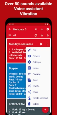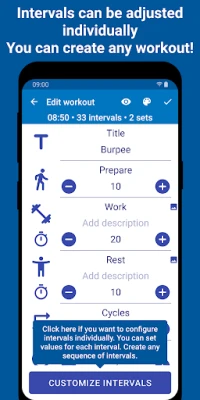 🕓 You can add descriptions to the intervals and sets that will be displayed on the timer screen and will be voiced.